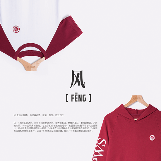 风 万物生长的动力,向往自由并充满活力。和煦的春风,热情的夏风,柔和的秋风,严厉的冬风。一年四季周而复始。在孩子们成长发育过程中,校园运动有着不可替代的重要性,适合四季不同需求的运动服装,为学生在运动过程中提供更好的支持和保护,为展现其活力和热情创造条件,让孩子们锻炼出坚强的体魄,象风一样有着坚韧的适应能力。